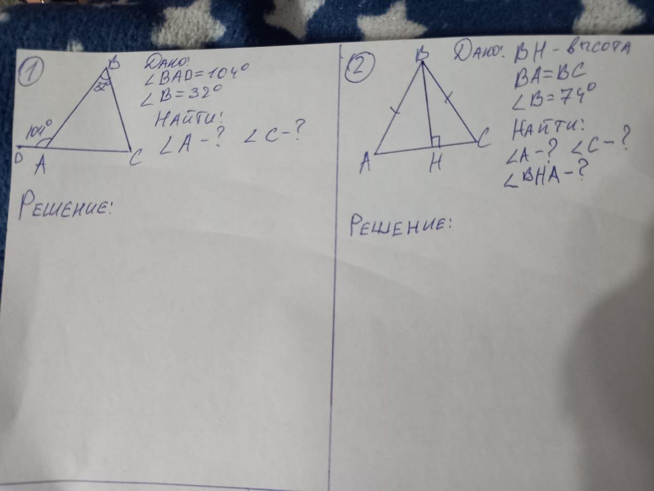 2) Это равнобедренный треугольник. Значит угол А и угол С равны. И учитывая то что сумма внутренних углов треугольника равняется 180°, то угол А=С=(180-74)÷2=53