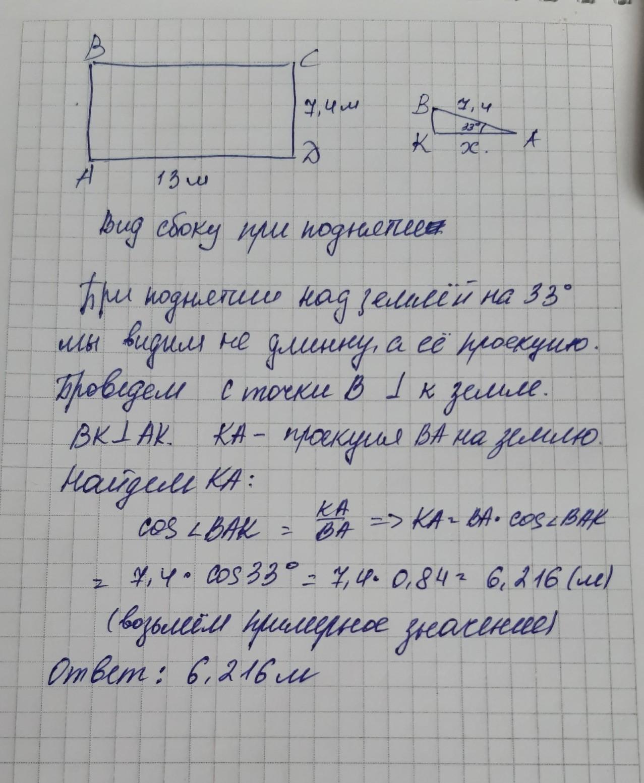 3) а теперь поднимаем одну из ширин прямоугольника на 33 градуса вверх.