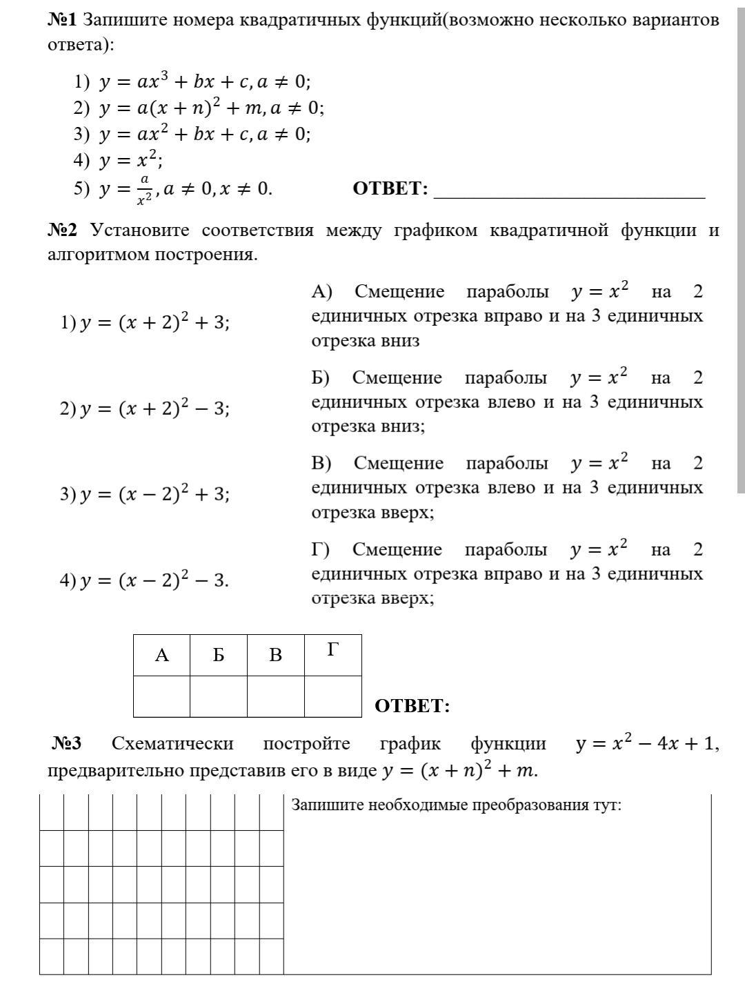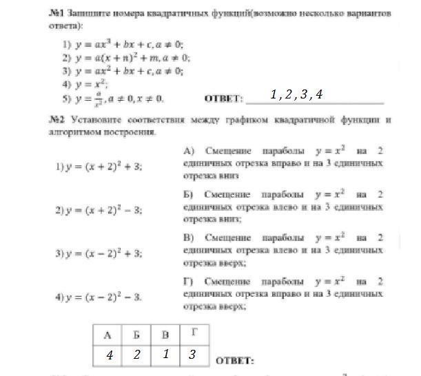 1 Запишите номера квадратичных функций(возможно несколько вариантов ответа):