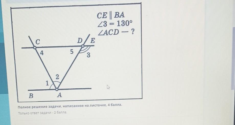 3)∠1=∠4=65°,т.е. ∠ACD=65°