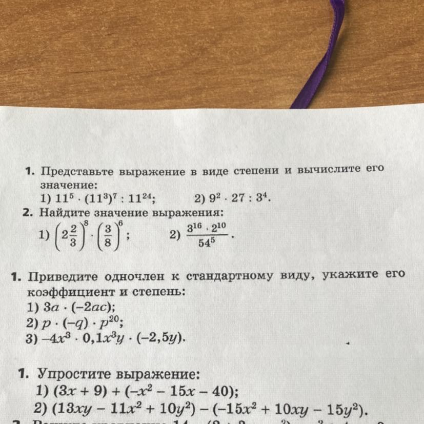 1.1при умножении показатели складываются, при делении вычитаются, при возведении степени в степень умножаются