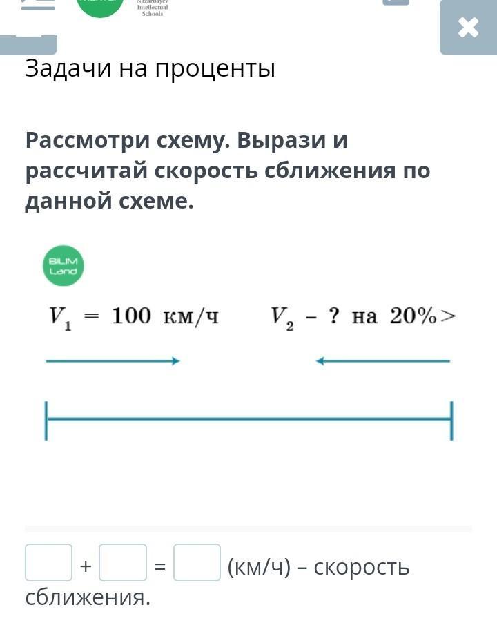 сначала найдем 20% от ста 20×20/100=20; 100+20=120 и это будет скорость сближения