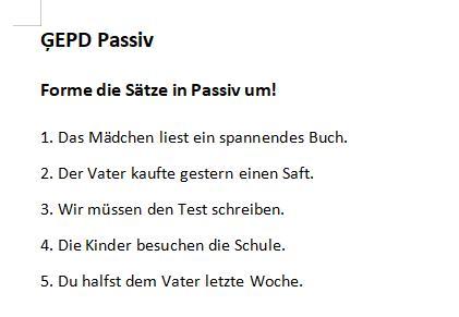5. Letzte Woche wurde von dir dem Vater geholfen.