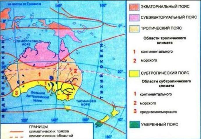- На территории, обозначенной на карте штриховкой, действуют тропические воздушные массы летом и умеренные воздушные массы зимой.