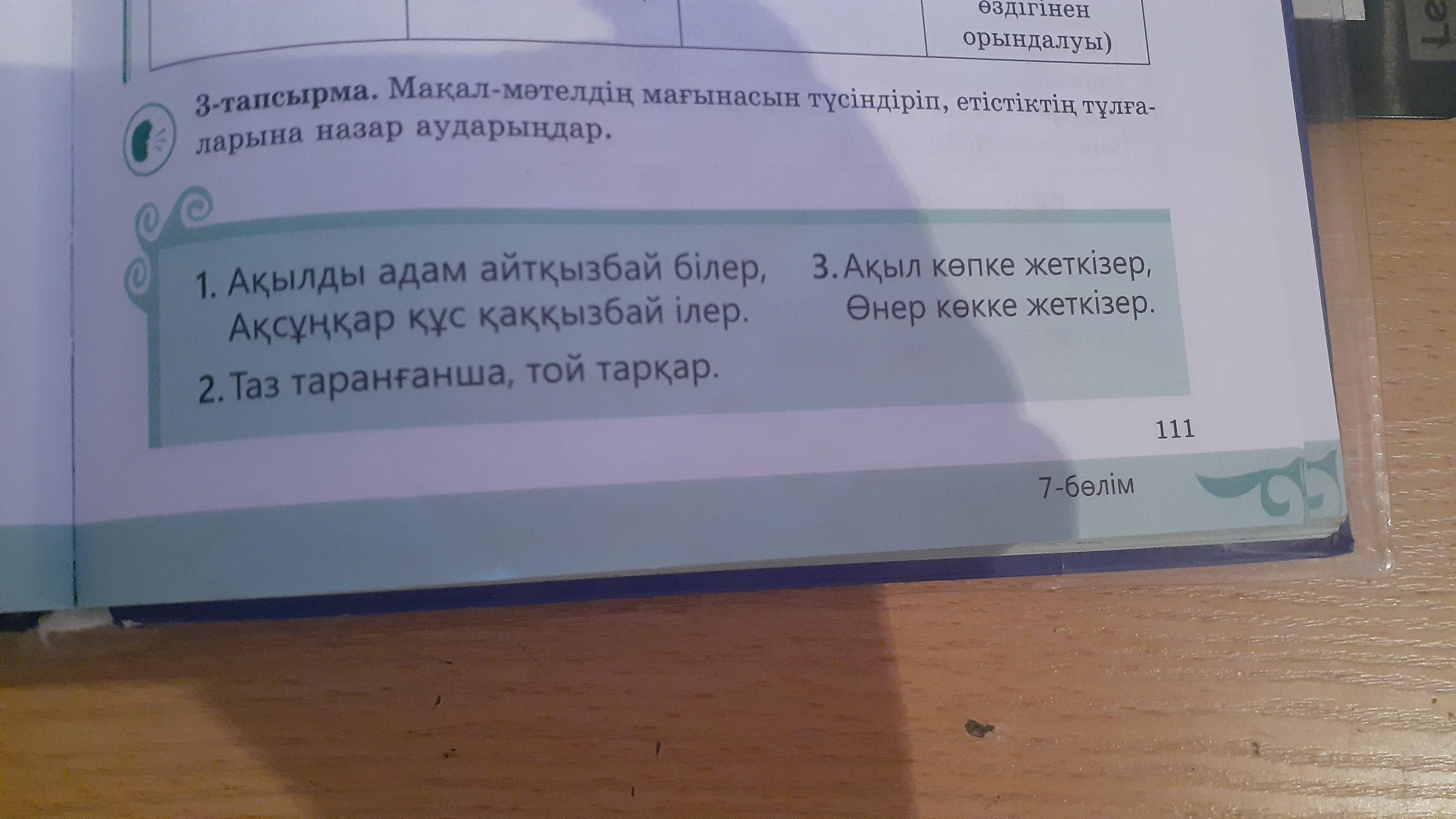 3 тапсырма мақал мәтелдің мағынасын түсіндіріп етістіктің тұлғаларына назар аударыңдар