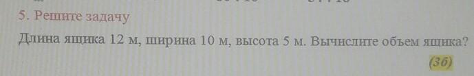 Длина ящика 12 м, ширина 10 м, высота 5 м. Вычислите объем ящика?