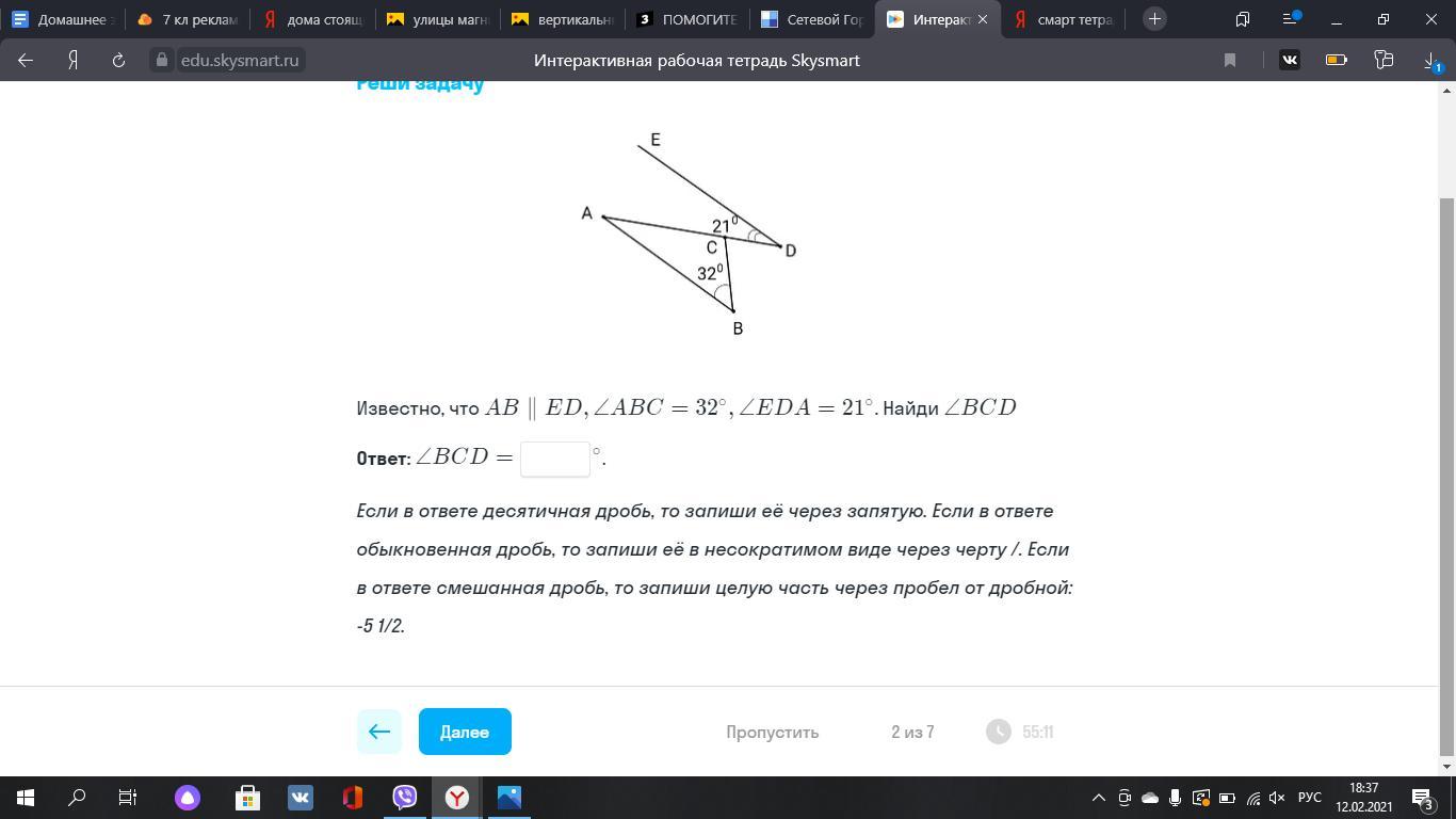 ACB=180-(21+32)=127°