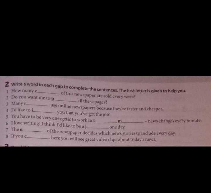 write a word in each gap to complete the sentences.Tbe first letter os given to help you