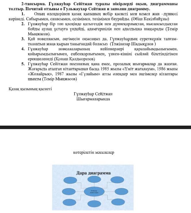 2-тапсырма. Гүлжауһар Сейітжан туралы пікірлерді оқып, диаграмманы