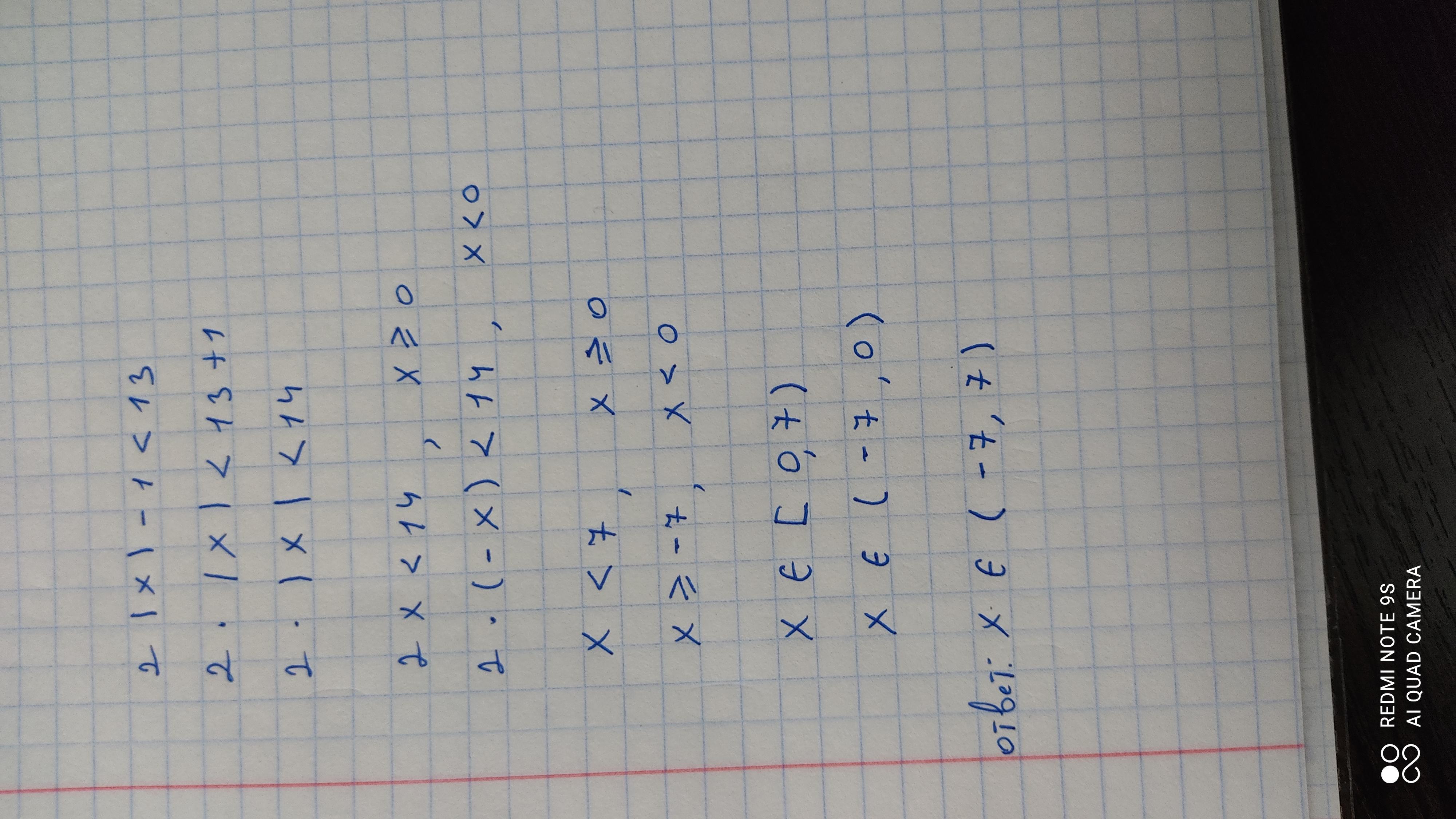 Ответ: x ∈ ( -7, 7)