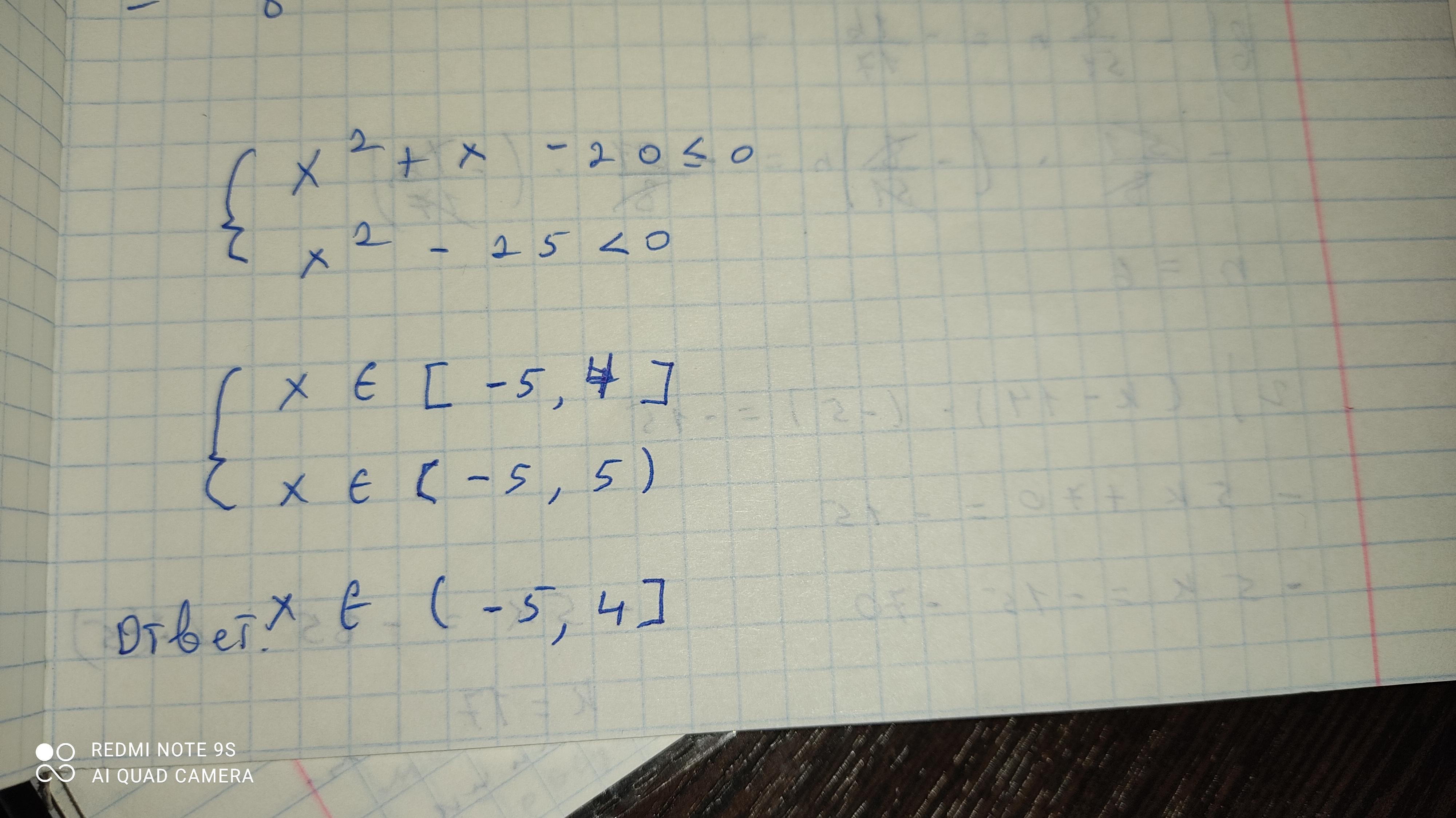 х ∈ (-∞; -5], [4; ∞) и [-5; 5)