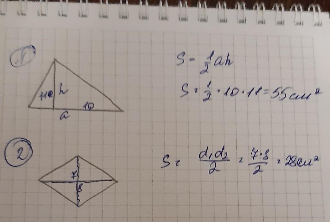 Сторона трикутника 10 см, а висота до неї, 11 см. Знайдіть площу цього трикутника. (55 см кв,)