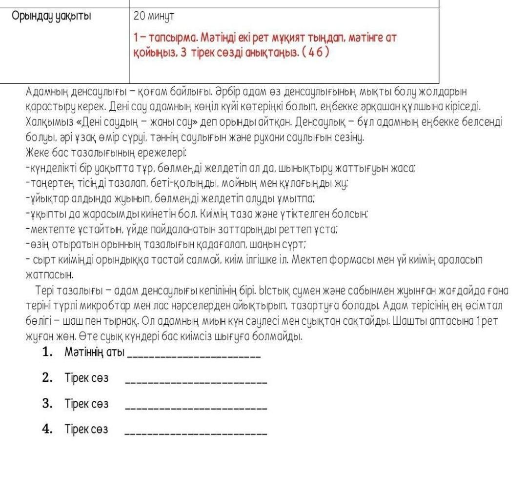 Тірек сөздер:, адам, , денсаулық,тазалық, саулық,жеке бас.