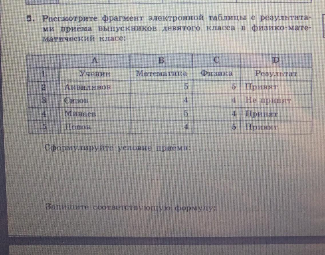 =ЕСЛИ((B1+C1)>=9; "Принят"; "Не Принят")