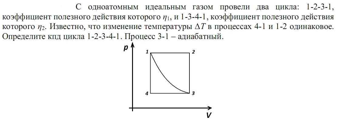 в цикле 1 3 4 1 теплота подводится на участке 4 1 и равна 3/2νRΔT или 3/2 p(V₂-V₁) (по условию что дельта тэ одинаковые)