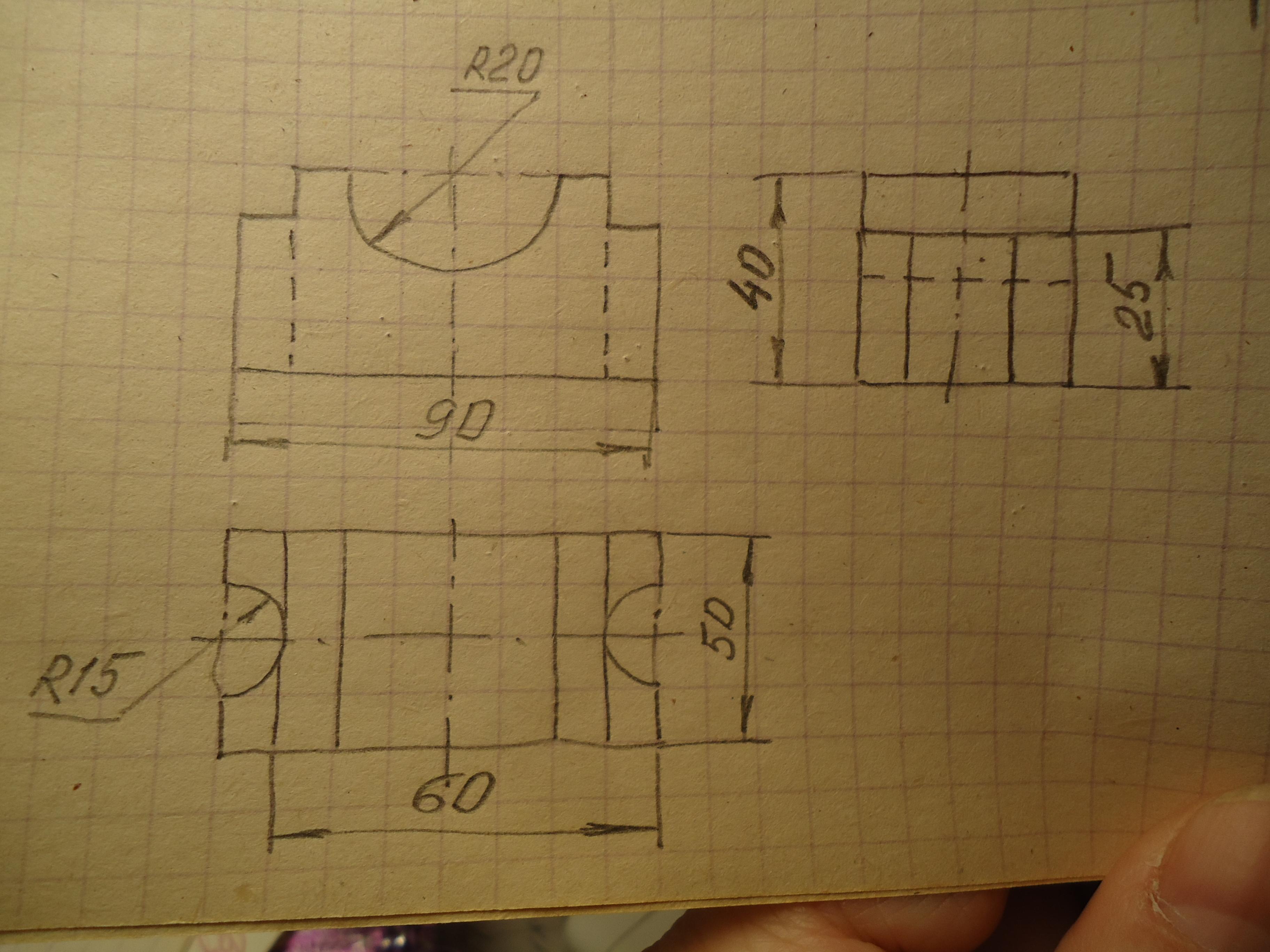 Чертёж детали из трёх пропорций см. на фото.