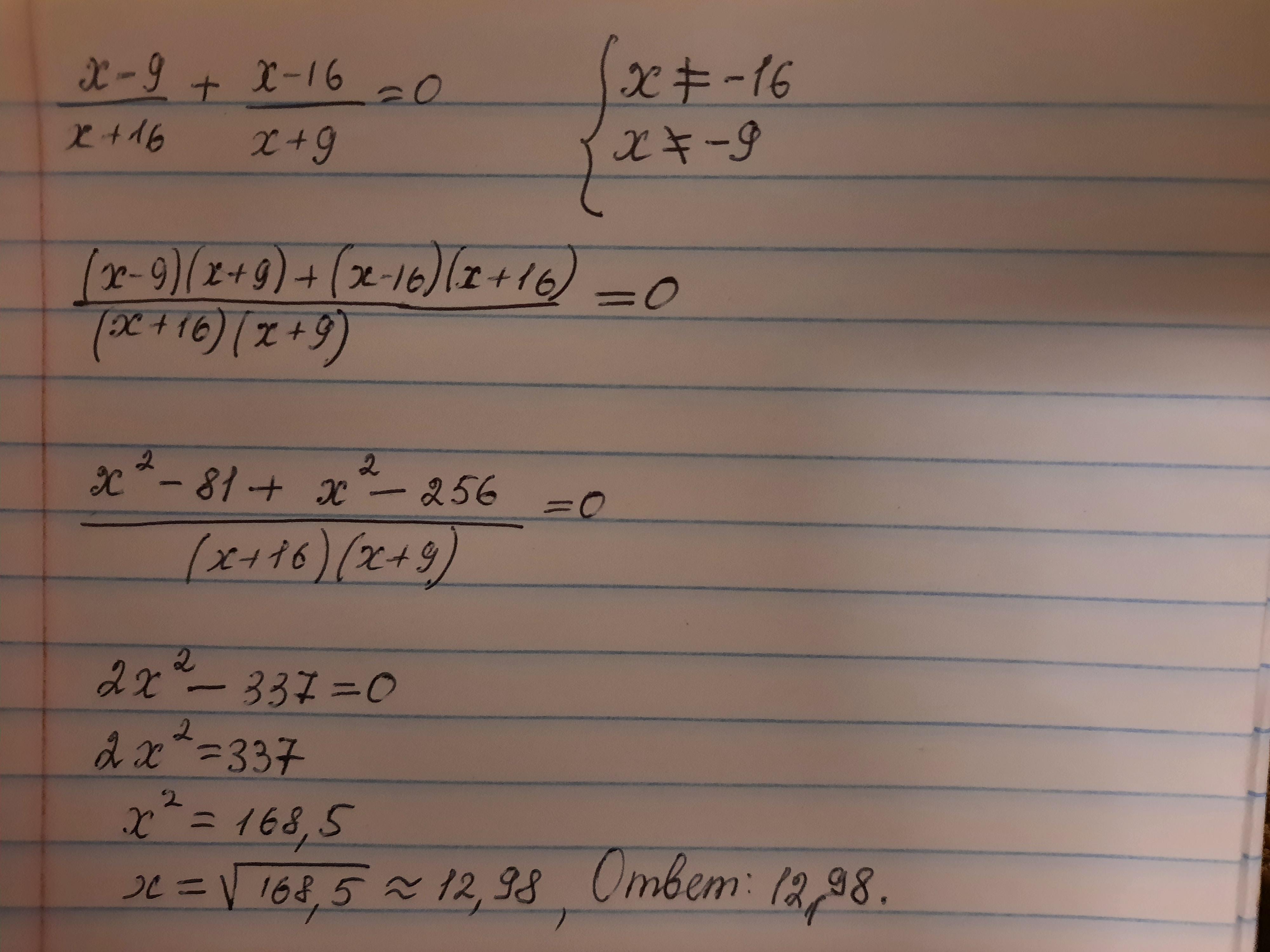 Приравниваем к нулю числитель, так как уравнение равно нулю тогда, когда числитель равен нулю, а знаменатель не равняется нулю.
