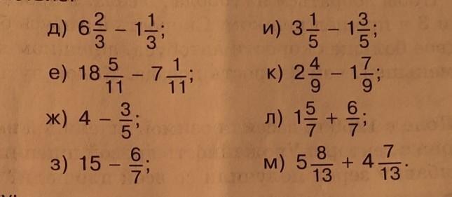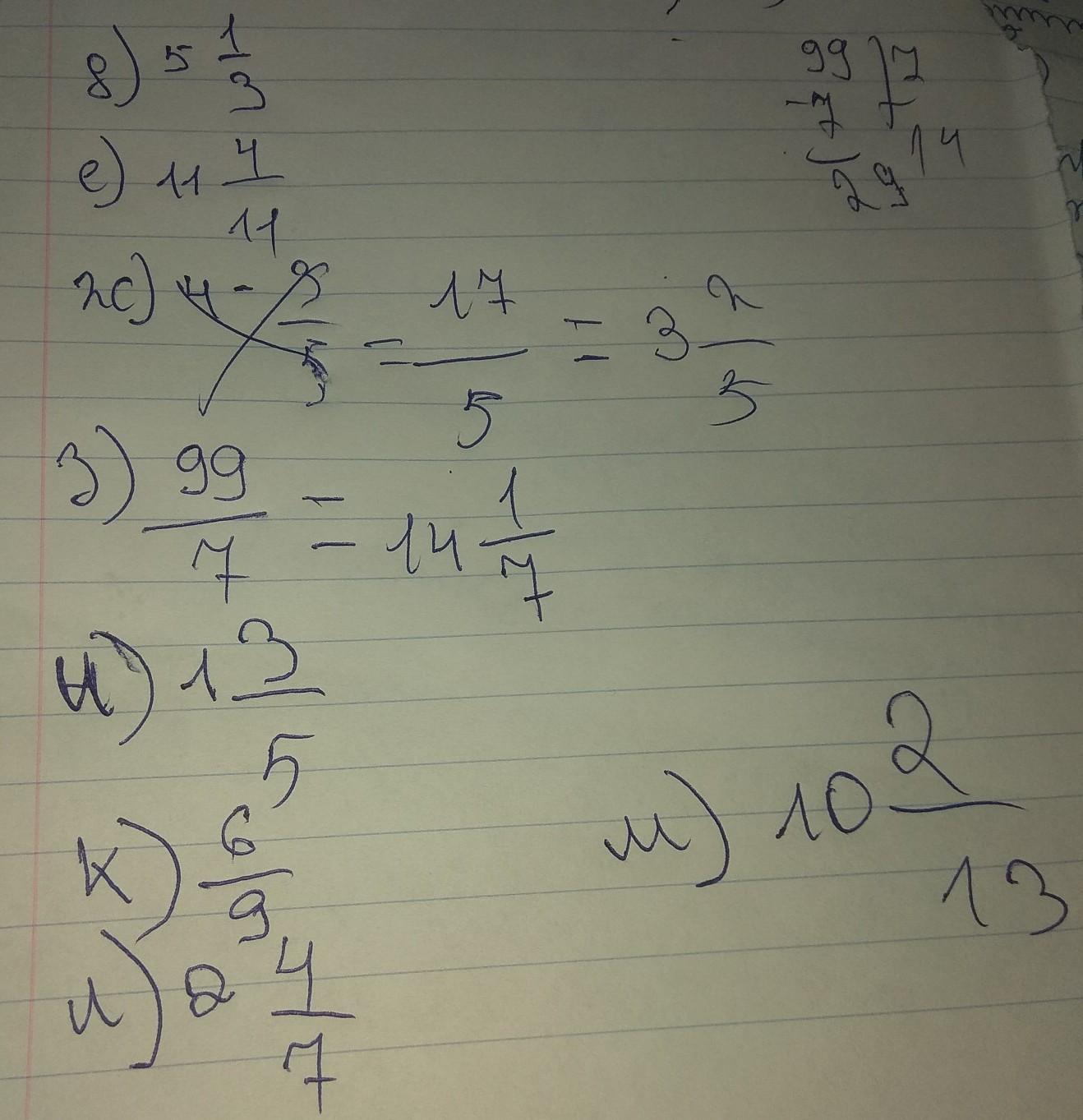 и) 3 1/5 - 1 3/5 = 2 6/5 - 1 3/5= 1 3/5