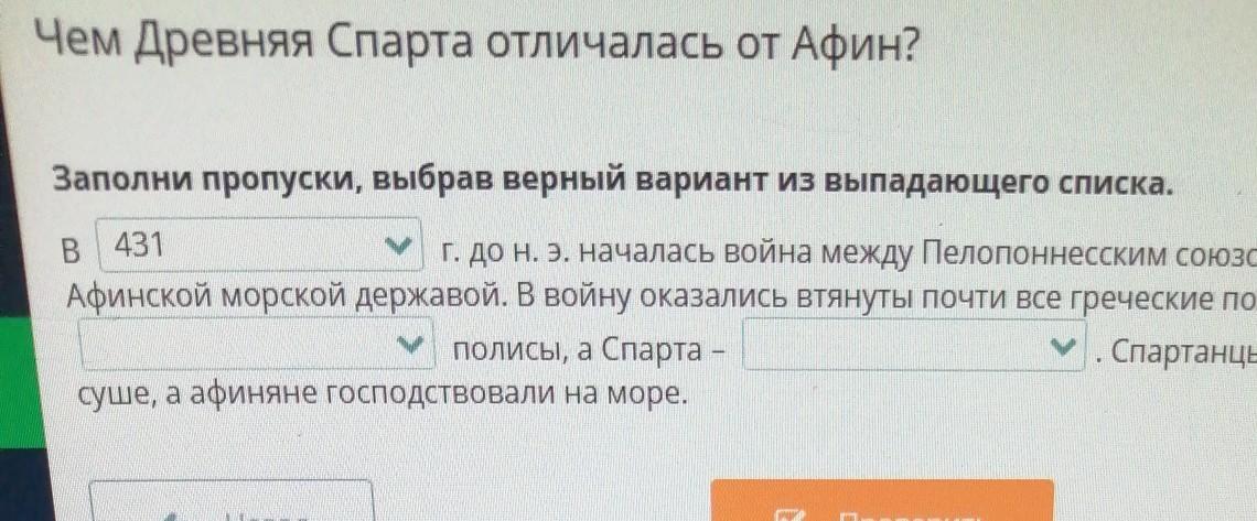 Заполни пропуски, выбрав верный вариант из выпадающего списка.