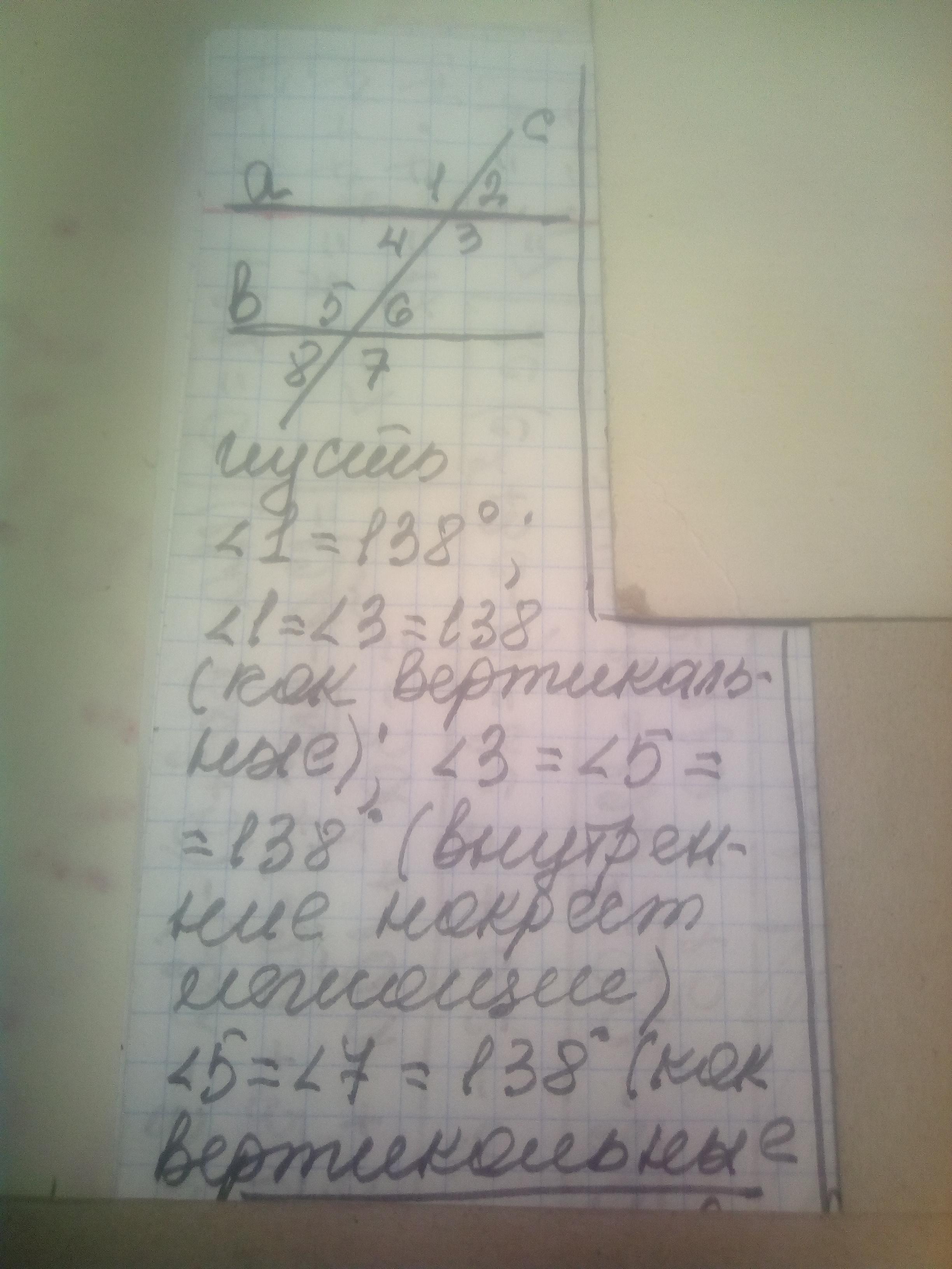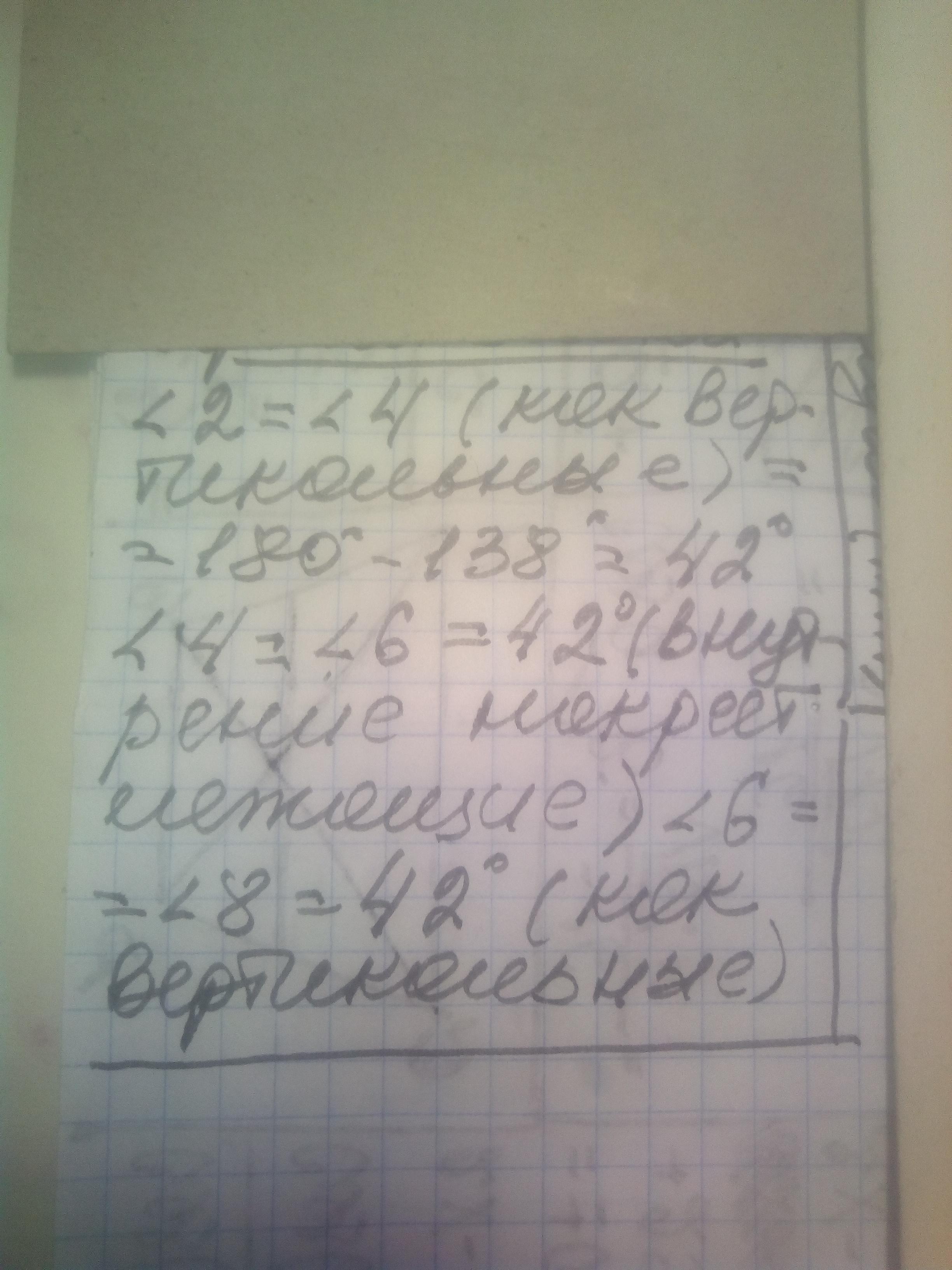 Найдите все углы, образованные при пересечении двух параллельных прямых секущей, если один из этих углов равен 138 градусов