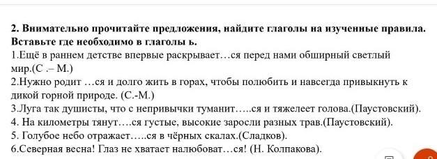 2. Внимательно прочитайте предложения, найдите глаголы на изученные правила. Вставьте где необходимо глаголы. (случайно на тему биология нажал это русский)