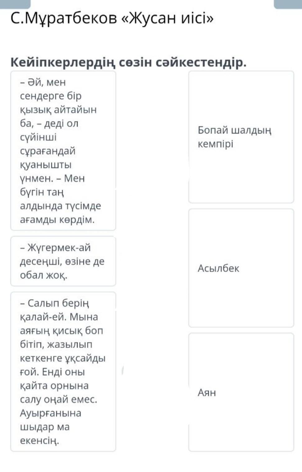 - -Әй, мен сендерге бір қызық айтайын ба, - деді ол сүйінші сұрағандай қуанышты үнмен. - Мен бүгін таң алдында түсімде ағамды көрдім. ⇒ Аян