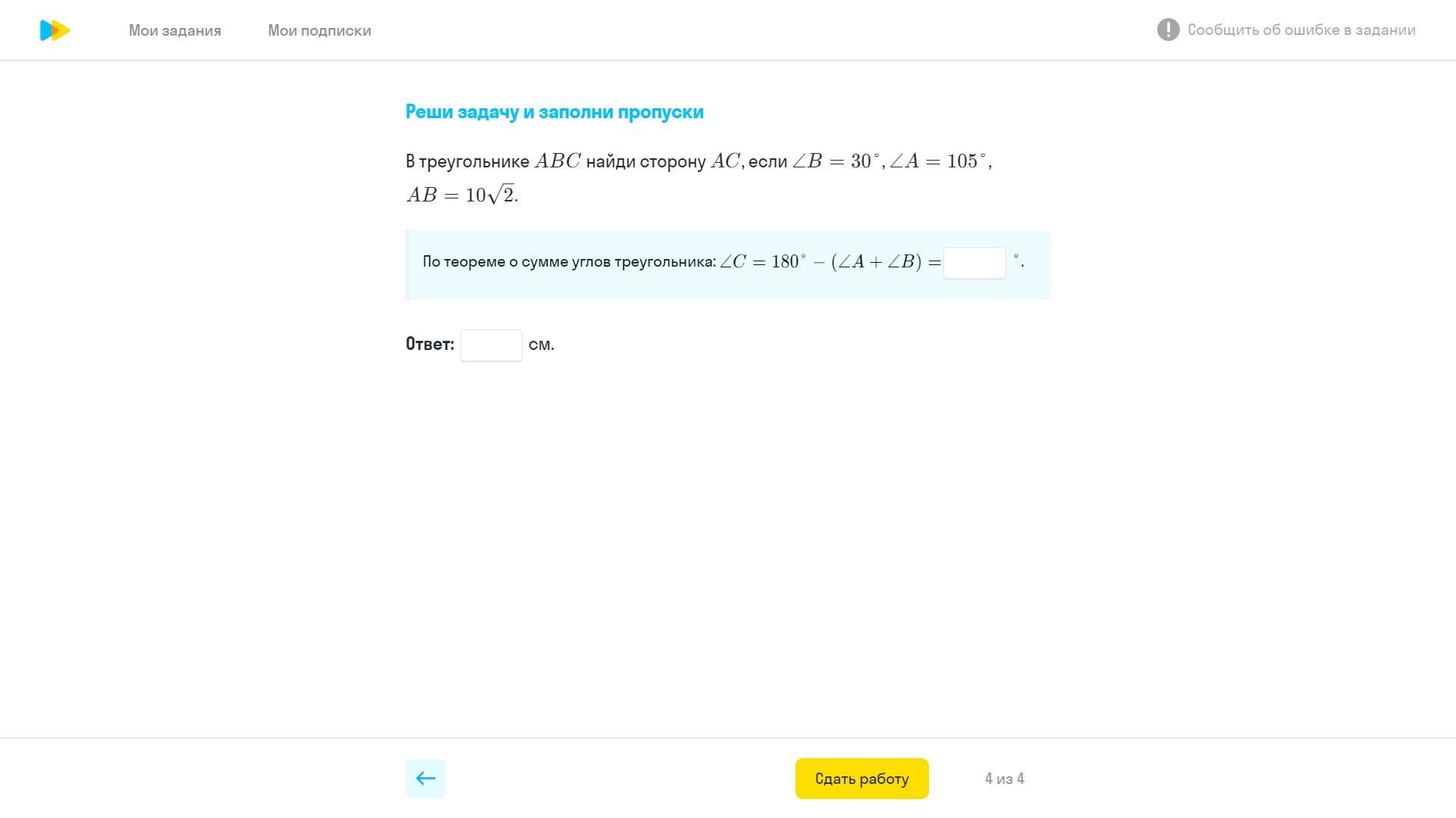∠С = 180° - (∠А + ∠В) = 180° - (105° + 30°) = 180° - 135° = 45°