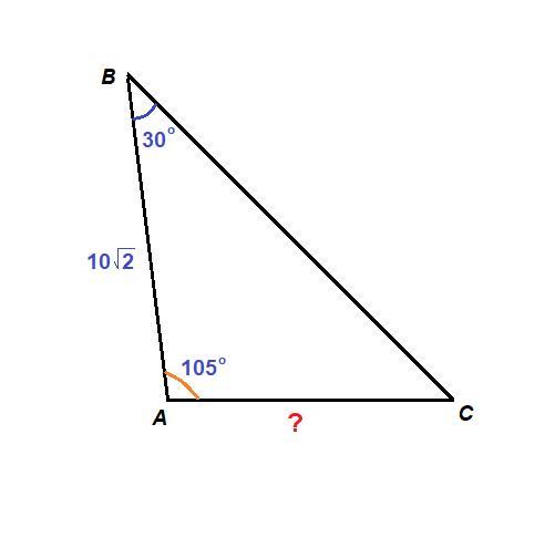 В треугольнике АБС найди сторону АС, если угол В=30 градусам, угол А=105 градусам, АВ=10 корень из 2