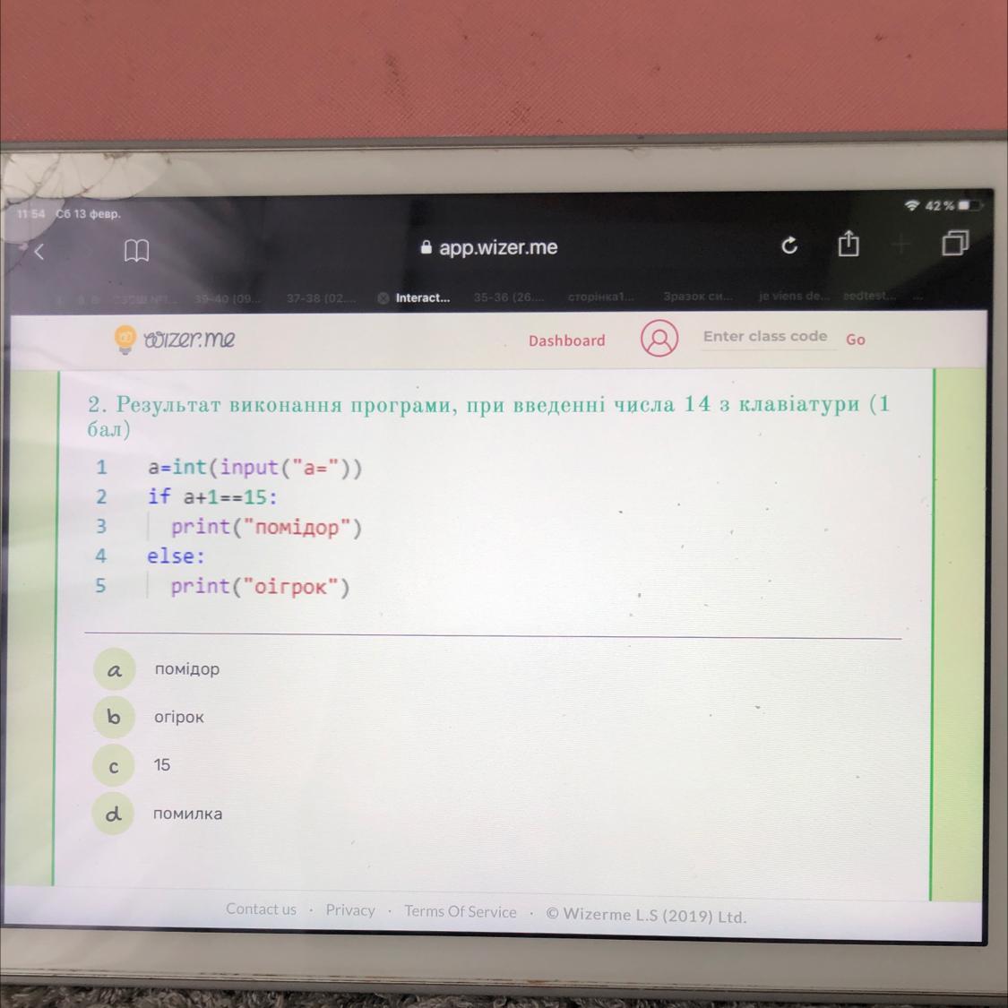 Ответ будет "помідор"