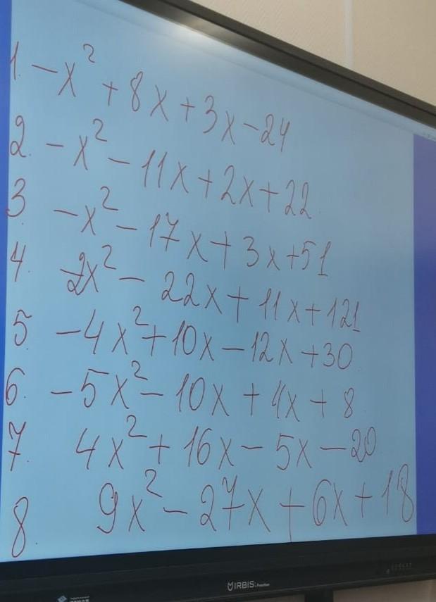 - + 8х + 3х - 24 = -х (х - 3) + 8 (х - 3) = (х - 3) (8 - х)