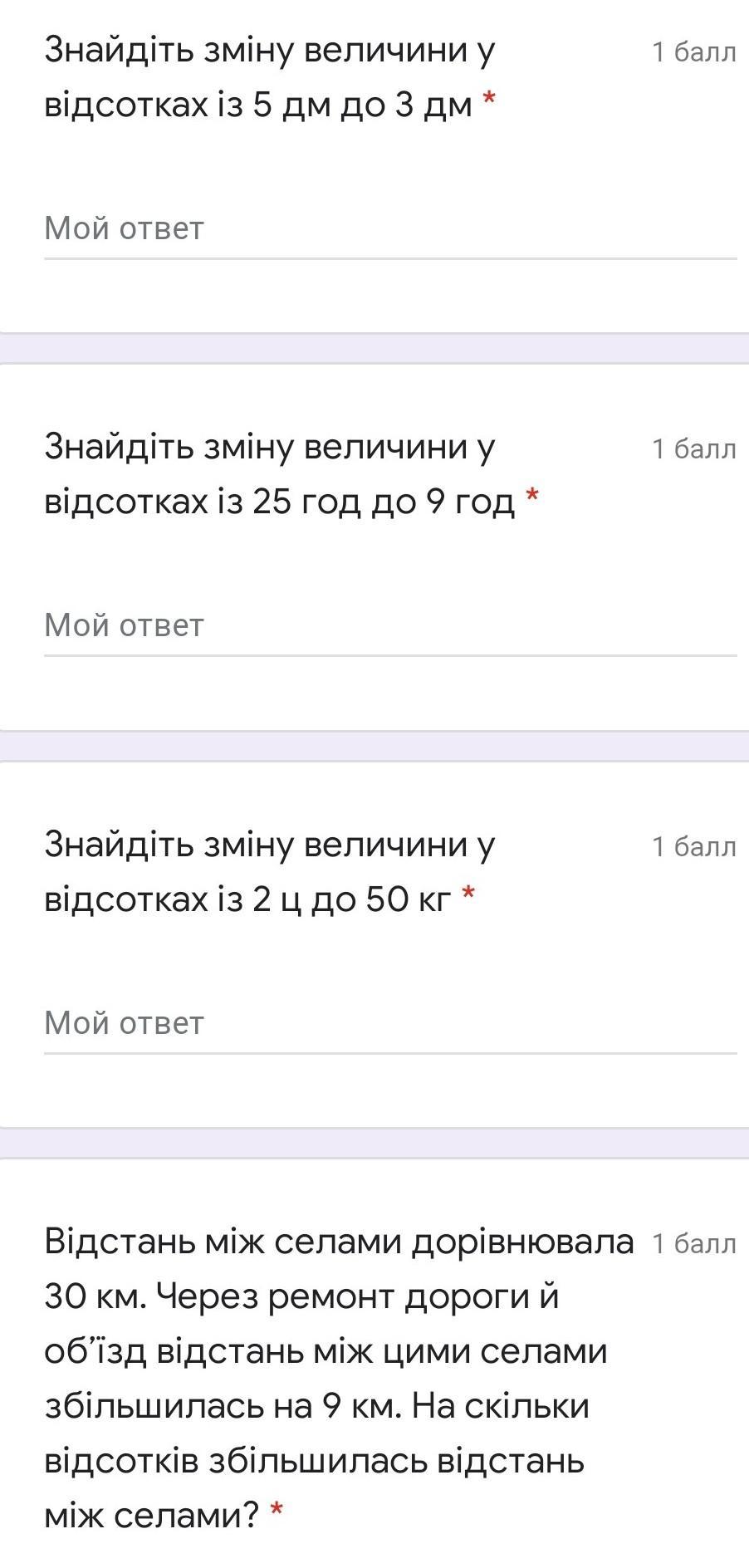 4. Відстань між селами дорівнювала 30 км. Через ремонт дороги й обізд відстань між цими селами збільшилась на 9 км. На скільки відсотків збільшилась відстань між селами?