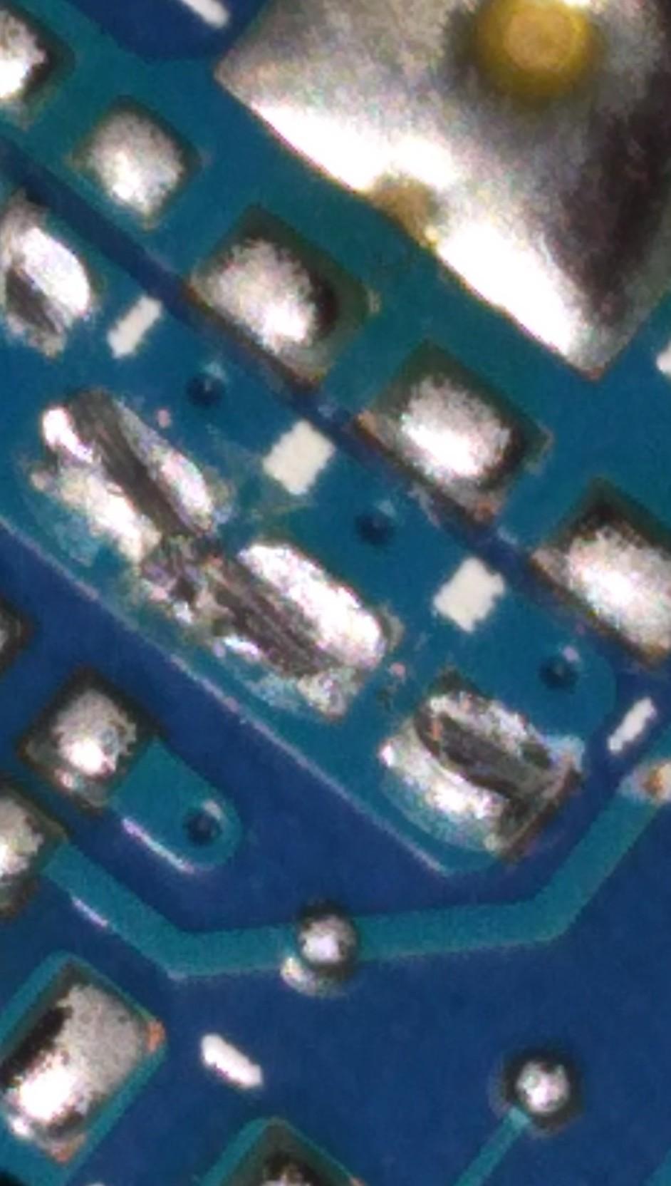 Не трогай. Если попробуешь перепаять и накосячишь, то только хуже будет. Лучше не трогай и покажи в сервисе, а то по фото не понятно.