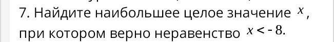 Пошаговое объяснение: Наибольшее целое число которое меньше чем -8 это -9