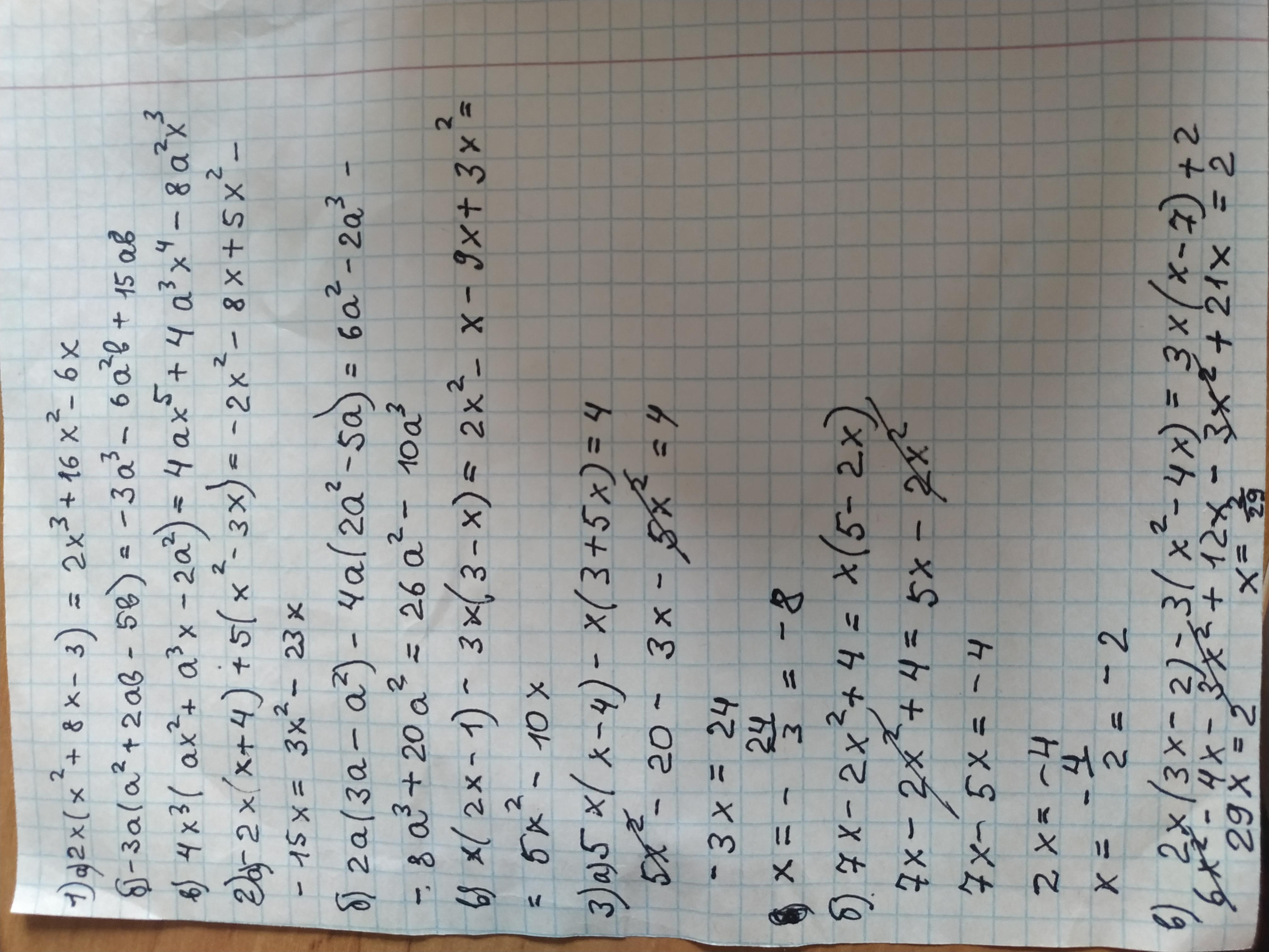 а) -2х²+4+5x²-3x=-3x²+4+3