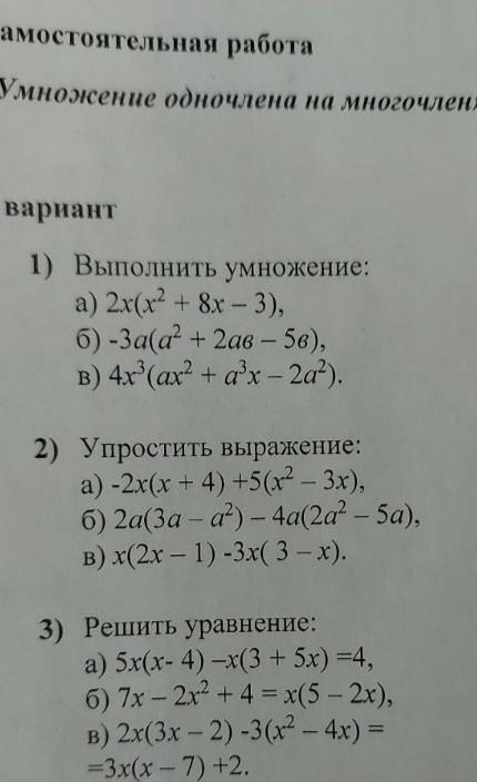 в) x(2x-1)-3x(3-x)=2x²-x-9x-3x²=5x²-9x²