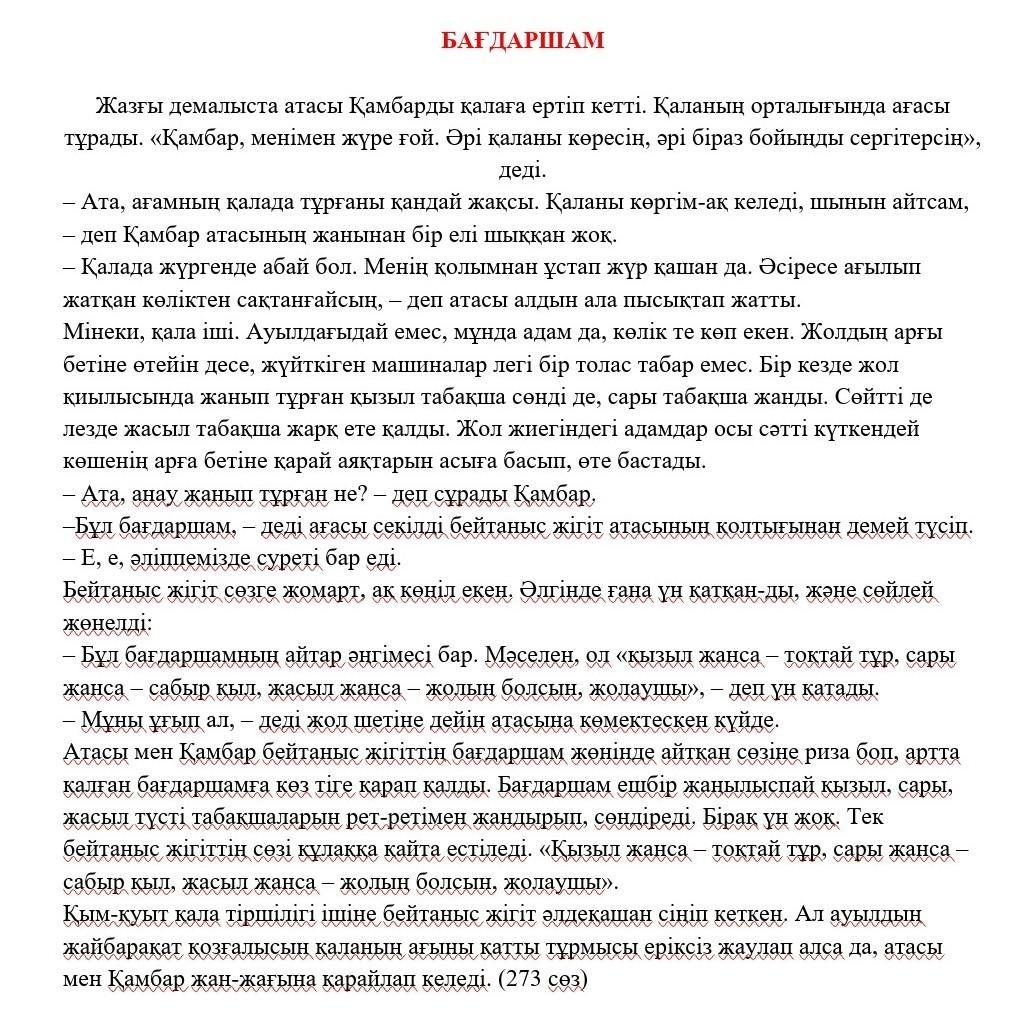 Ответьте пожалуйста на вопросы своими словами по тексту: <br />Төмендегі сұрақтарға жауап беріңіз. Мүмкіндігінше, өз сөзіңізбен жауап беруге тырысыңыз. <br /><br />Әр сұрақтың балы жақшада берілген. Тіл сапасына қосымша 5 балл беріледі.<br /><br />1.Қалада кіммен кездесті?<br /><br />2.Бейтаныс жігіт қандай көмек көрсетті?<br /><br />3.Бейтаныс жігіт қандай? 4.Ауыл мен қаланың айырмашығы бар ма? 5.Қамбар неге таң болды?