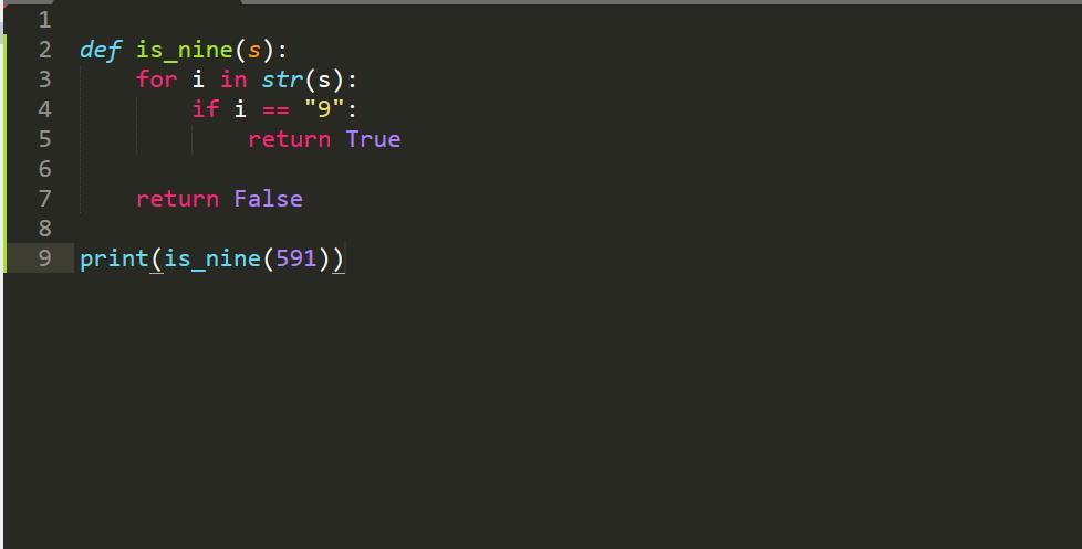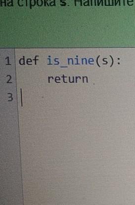 Дана строка s. Напишите функцию is_nine(s), которая которая возвращает True, если в строке есть цифра 9. Функция должна возвращать False в другом случае.