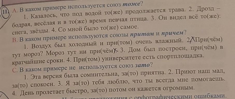 A. В каком примере используется союз тоже?