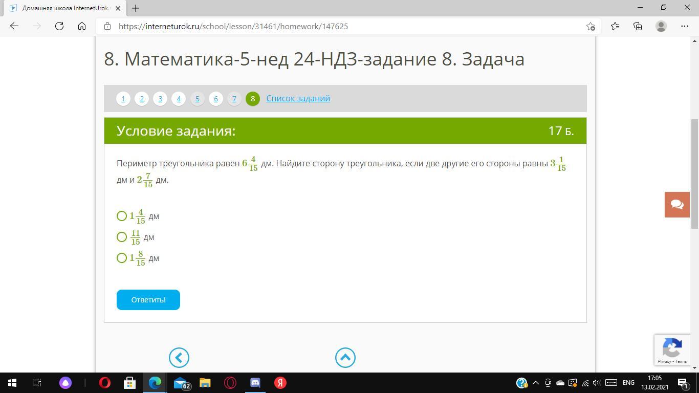c=P-a-b=6цел4/15-3цел1/15-2цел7/15=