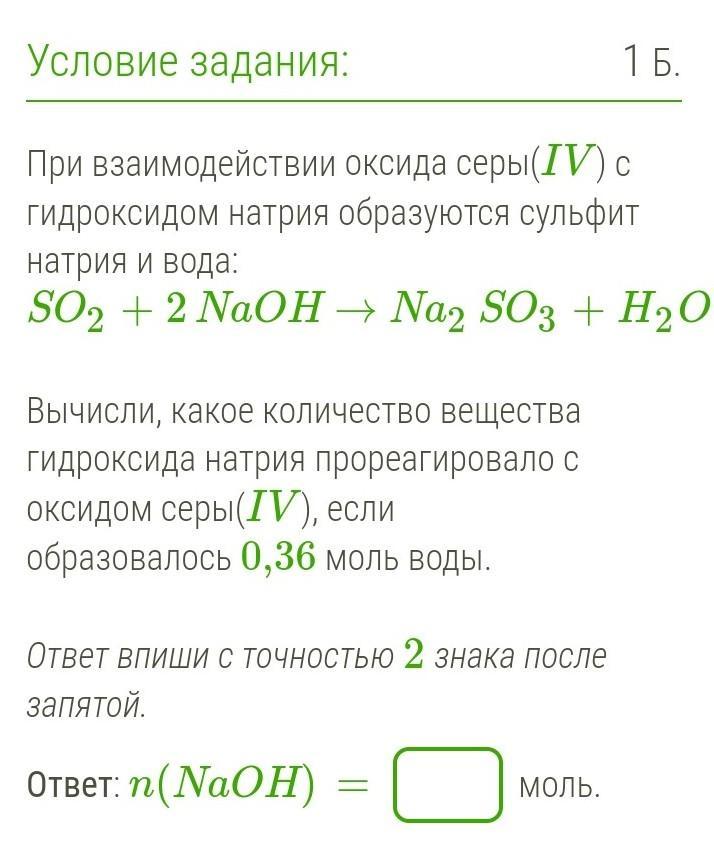 2) сравнить n вещества, которое дано с n вещества, которое нужно найти. По уравнение 2 моль гидроксида натрия - 1 моль Н2О, а по условию х моль гидроксида натрия - 0, 36 моль. Получим уравнение.