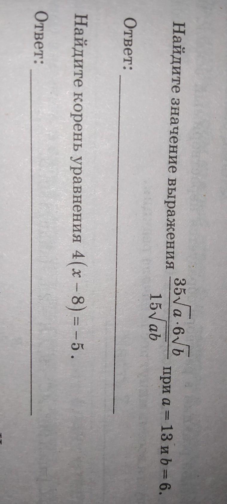 Значение выражения не зависит от а и b не равных 0 (если хоть один из сомножителей равен 0 выражение не имеет смысла). Квадратные корни числителя и знаменателя сокращаются и значение выражения равно 35/15=7/3.