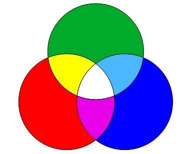 Модель RGB используется для воспроизведения спектра видимого света. Для создания различных цветов складываются разные уровни основных цветов (R (red) - красный, G (green) - зелёный, B (blue) - синий). Черный цвет - отсутствие любого света.