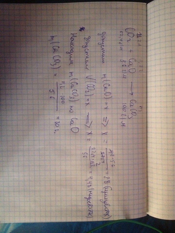 2)Сколько граммов карбоната кальция образуется, если в реакцию соединения вступят оксид кальция и 11,2 л углекислого газа