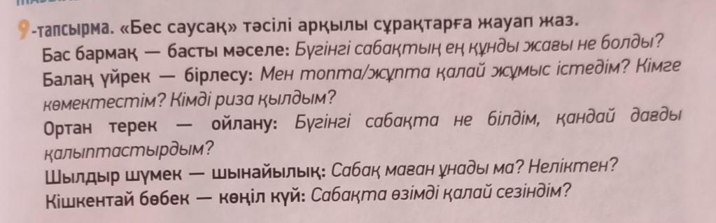 1. Бас бармақ- басты мәселе, жұмыс істеу. Бүгінгі сабақтың құнды жағы топпен жұмыс істеу болды.