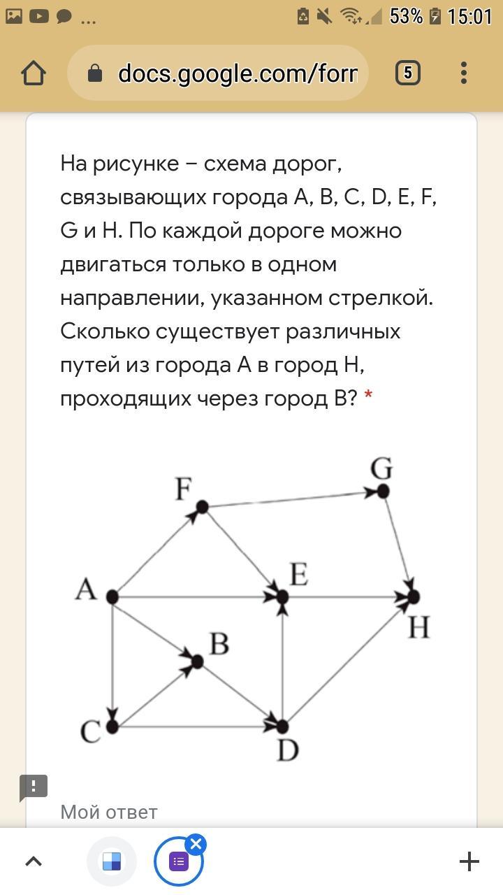 С точки B до точки H есть 2 пути (B-D-H, B-D-E-H)