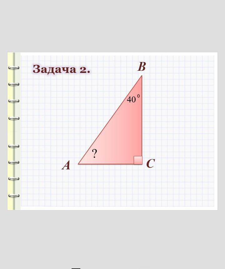 Угол А= 180°-угол В - угол С = 180-40-90= 50°