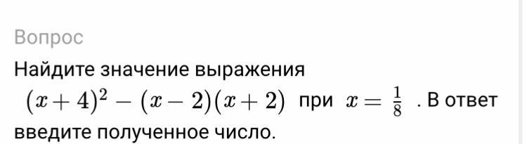 (x+4)^2-(x-2)(x+2)= (x-2)+x+4)^2-(8+2)=x=1/8