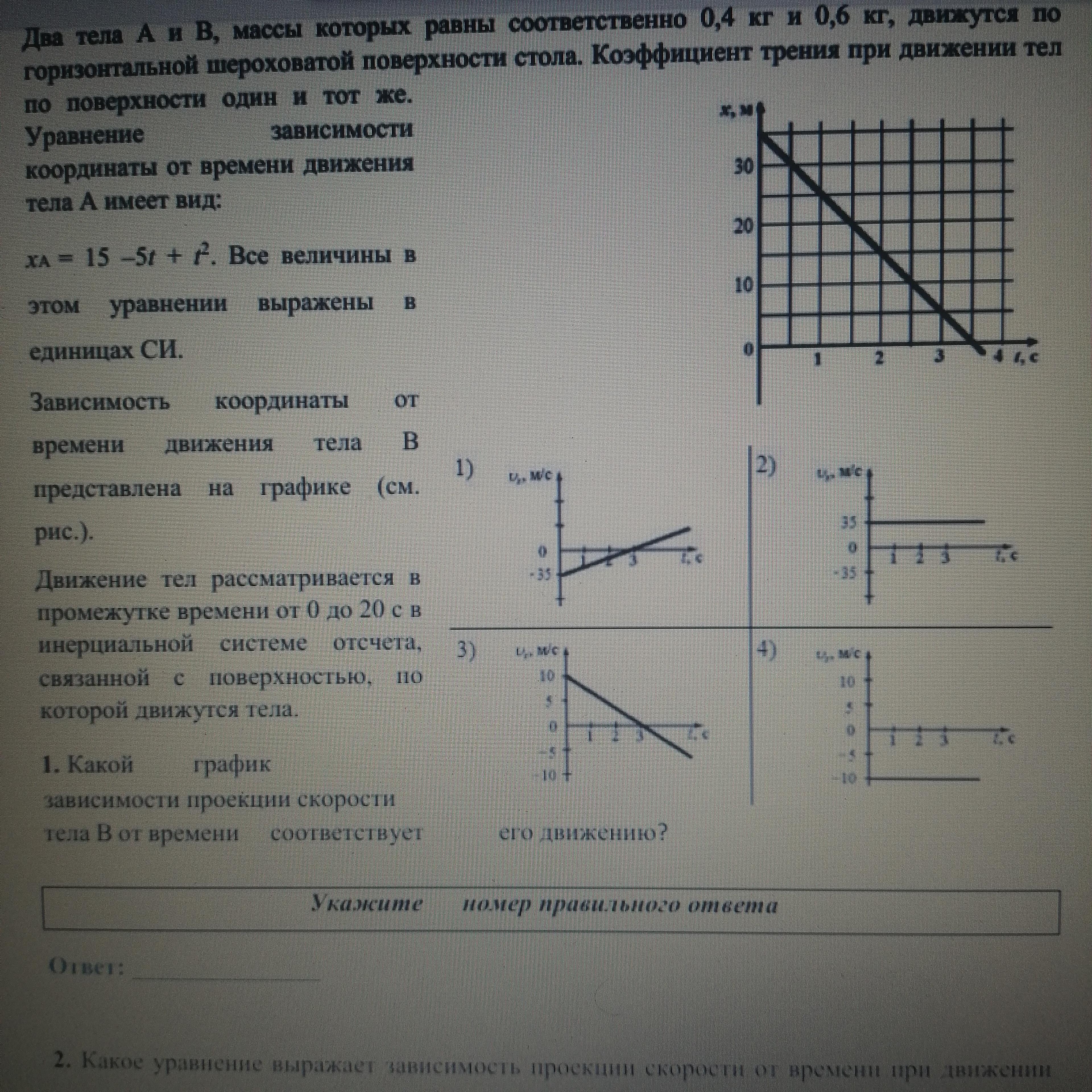 v(B) = - 10 м/с, значит зависимости проекции скорости тела B от времени соответствует график 4).