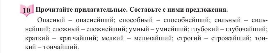 1. Этот человек Опасный. 2. Ты очень способен! 3. Он сильнейший из нас. 4. Этот прием очень сложный. 5. Ворон очень умный. 6. Самый глубокий океан на планете - это тихий океан. 7. Ваня прочитал краткий пересказ, вместо целой книги. 8. Это самый мелкий пруд. 9. У нас строгий преподаватель. 10. Моя куртка очень тонкая и мама не разрешила мне идти гулять.