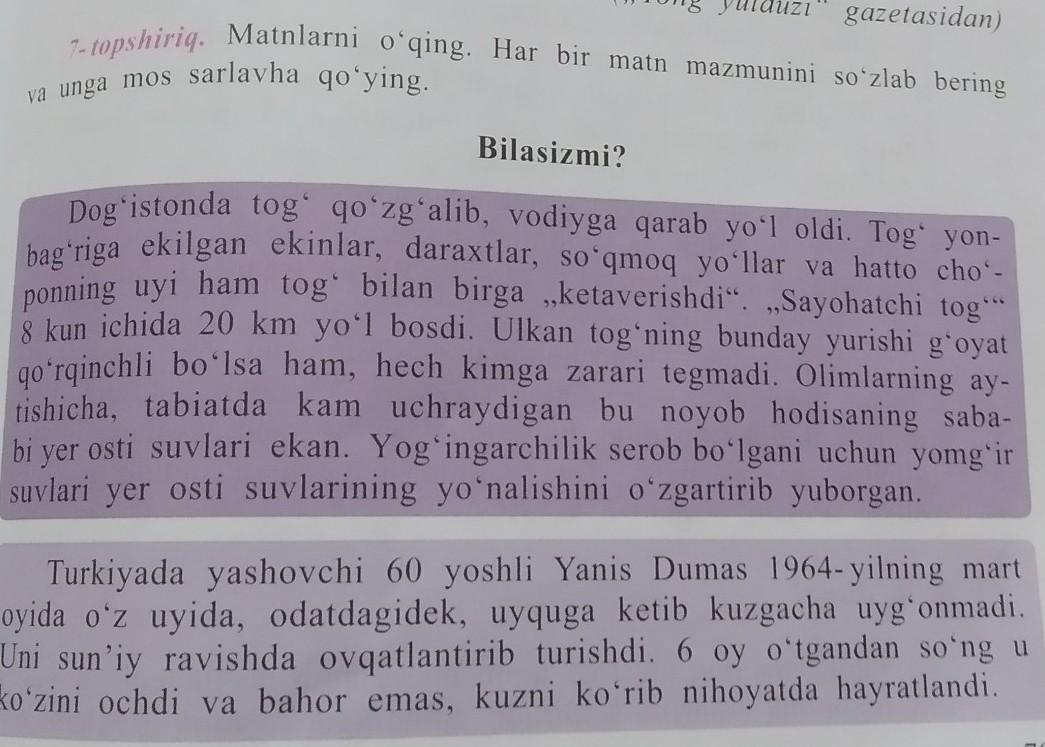 -topshiriq. Matnlarni o'qing. Har bir matn mazmunini so'zlab bering